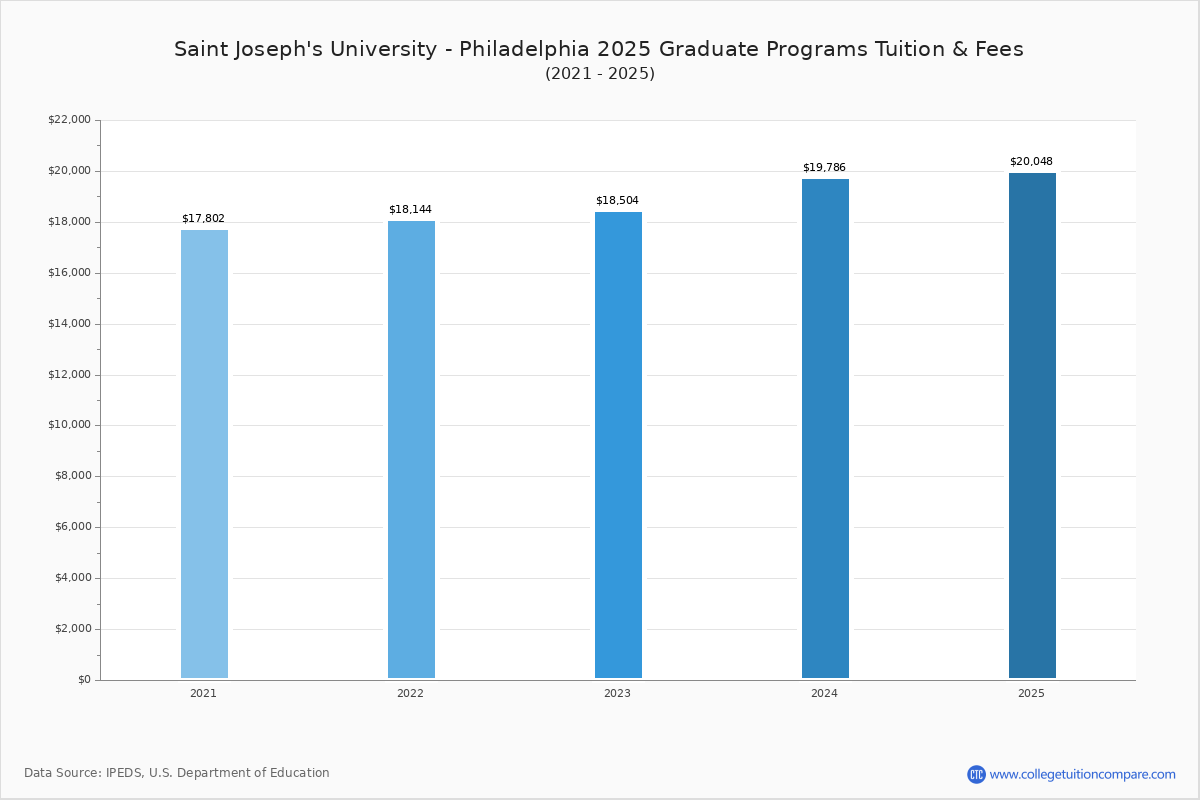 The 2024 tuition & fees of saint joseph’s university (saint joseph’s) is $51,340 for prospective students and the 2024 graduate school tuition & fees is $19,786.